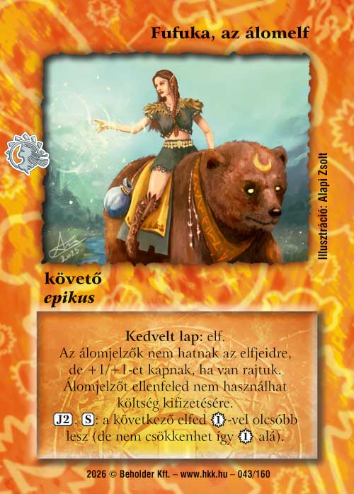 Egy nagyon erős 3 VP-s tempó lap, ha a második körben ki tudjuk rakni, akkor könnyen behozhatatlan erőforráselőnyre tehetünk szert. Kijátszásakor rögtön visszaadja az ára egy részét, az §Ü képessége pedig tovább dolgozik. Mivel háló és gyógyulás is jutott rá, az ellenfelünknek nagyon nehéz lesz eljátszania mellette és lerohanni minket, főleg, hogy a képességével osztott álomjelzővel nem muszáj az elfjeinket erősítenünk, akár az ellenfelünket is megakaszthatjuk egy jókor időzített passzivizálással.